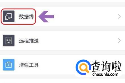 然后即可看到“数据线”功能了,点击之后就切换到了数据传输界面,如图二;
