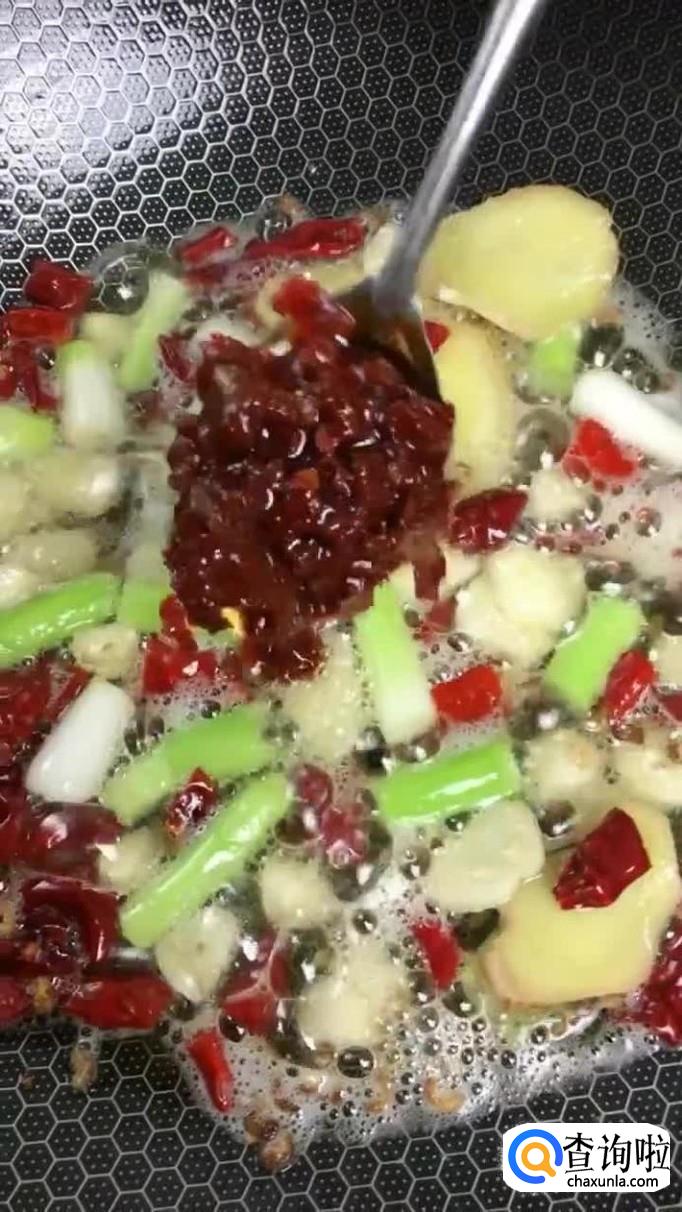 然后往锅中加入适量的豆瓣酱,如下图所示。
