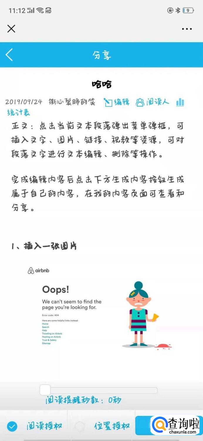 然后分享的时候左下角的“阅读授权”记得打上勾。
