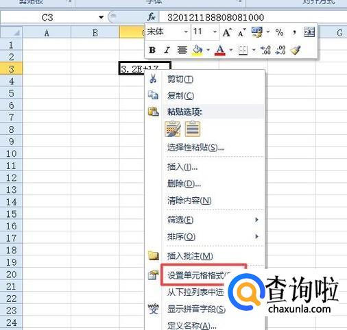 我们右击该单元格,弹出的界面,我们点击设置单元格格式;