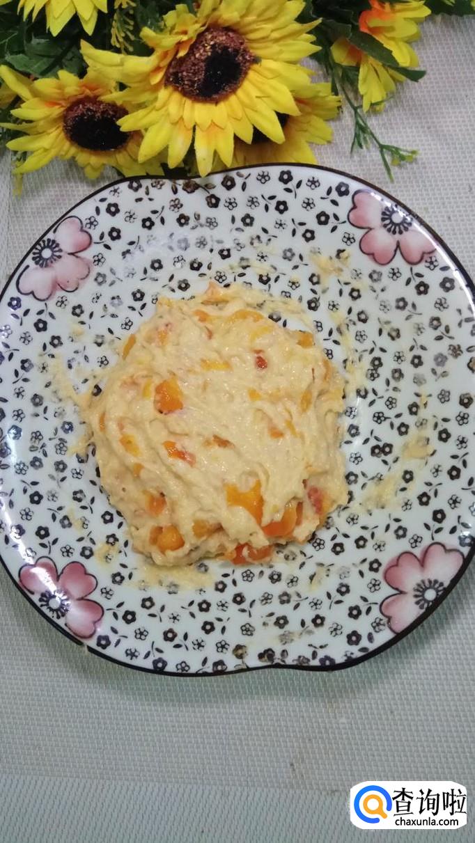 再加入适量面粉,搅拌成比较稠的泥状,注意软硬度,不能太软也不能太硬,否则影响口感。