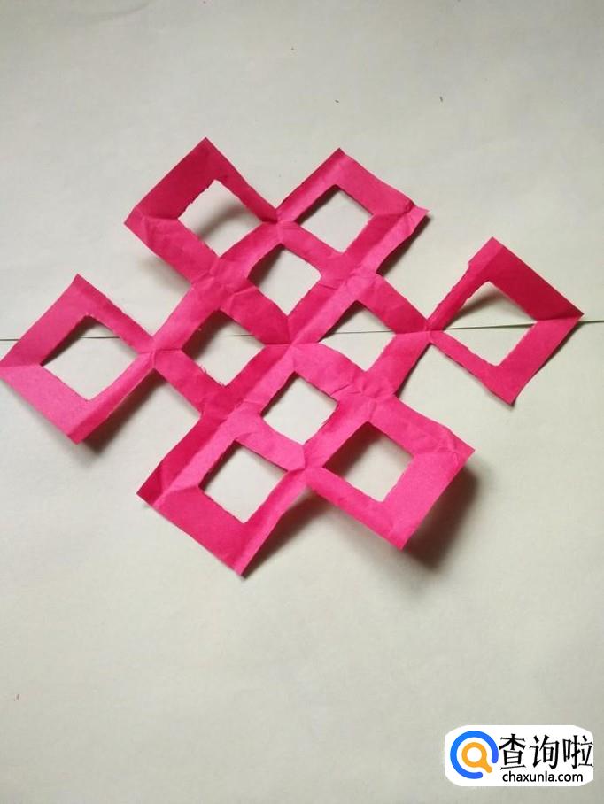 最后我们打开彩纸,美丽的中国结(盘长结)就剪好啦!如图