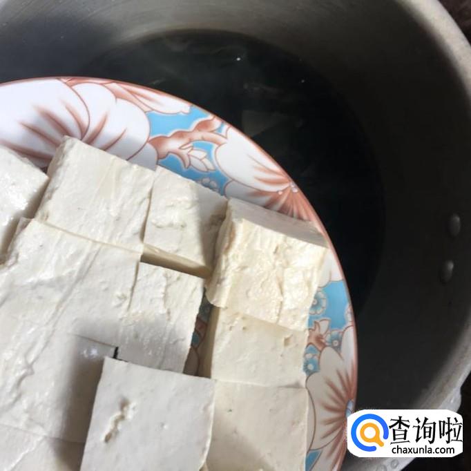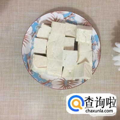 然后把豆腐洗净切成小块。
