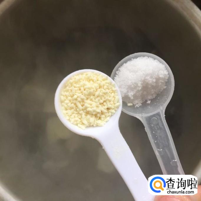 然后往锅中加入一勺的盐和一勺的味精,小煮片刻就可以出锅了。