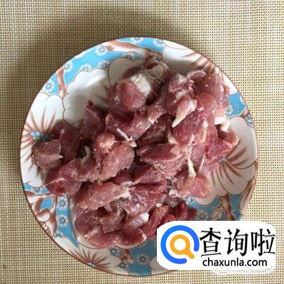 然后把瘦肉切成薄片并用适量的地瓜粉裹一下。