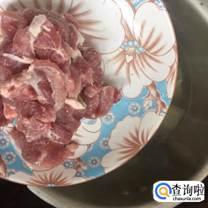 接着把瘦肉倒进锅压锅,煮五分钟。