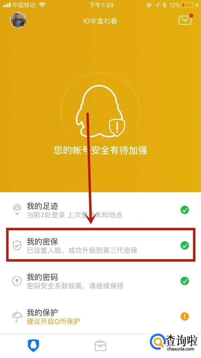 然后点击我的密保,如下图所示。