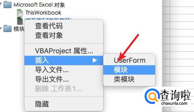 打开了代码编辑器,右键点击,然后插入‘模块’