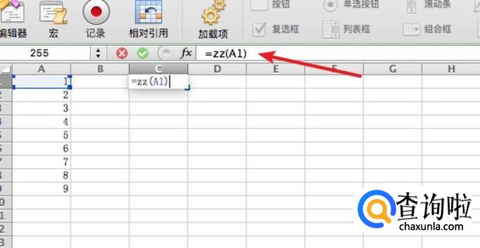 使用自定义的函数,和使用内置的函数一样,在公式栏输入就行了。