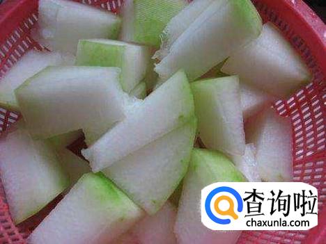 冬瓜去皮,洗净,切成块,装盘备用