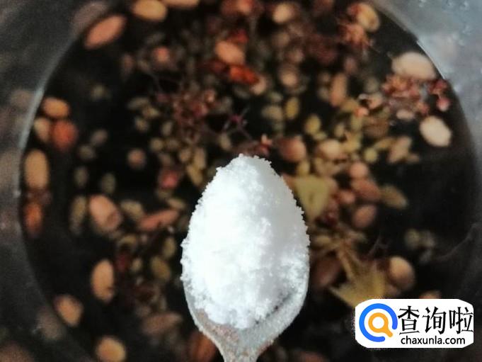 再放入姜、八角、花椒、辣椒、一勺食盐,都刚好后盖上高压锅盖,等煮开后再加上高压锅减压阀,减压阀转动时改小火慢煮。