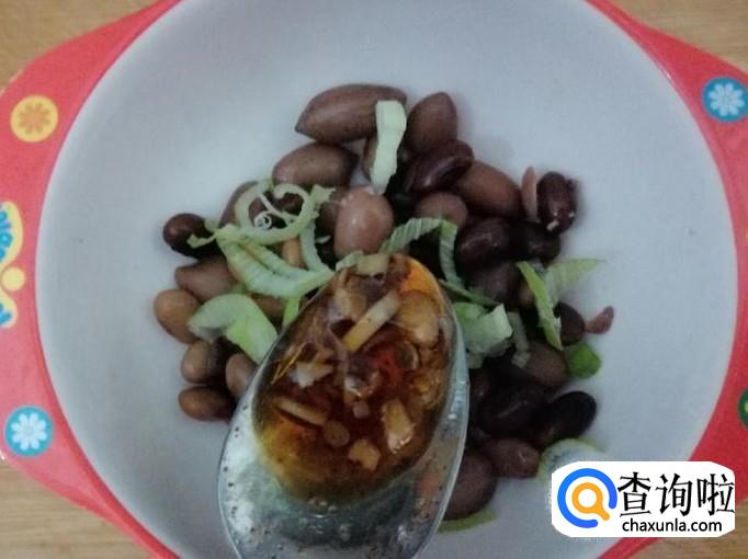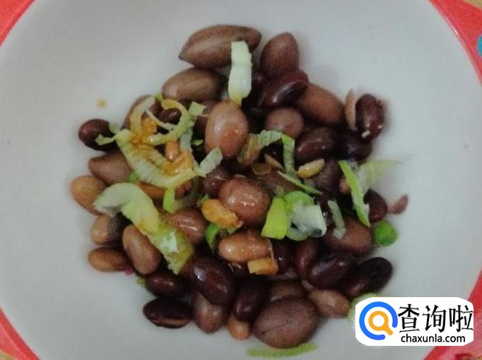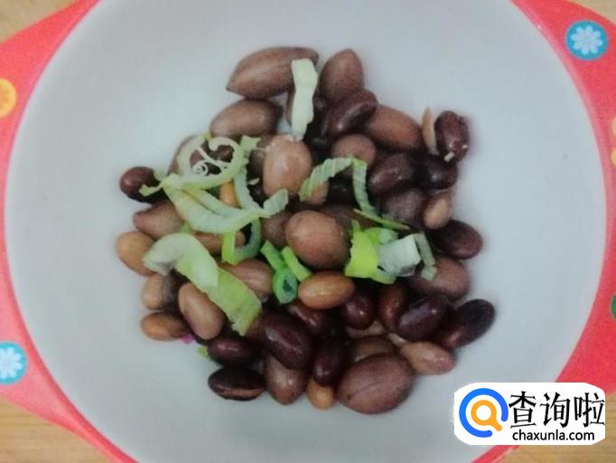 大约15-20分钟后关火,放置半个小时以上,拿下减压阀打开锅盖,捞出适量煮好的黄豆黑豆花生,加入适量葱末,放入醋和生抽、香油调好的料汁,搅拌均匀就可以开吃了。