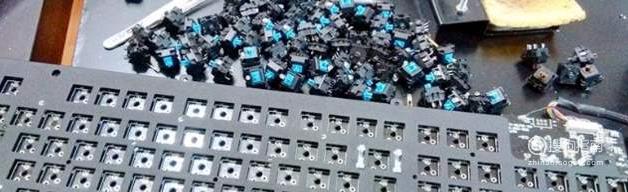 撬动之后,如果你是薄膜键盘的话,就会看到下面有一个白色的按键,把他平铺的方式放好,如果破损了就只能换一个了,如果是机械键盘要换轴