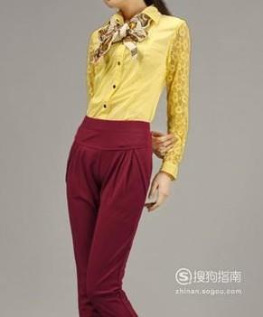 酒红色裤子配黄色衬衫。黄色的衬衫看起来很清新,配上一条酒红色的裤子,既可爱又时髦。