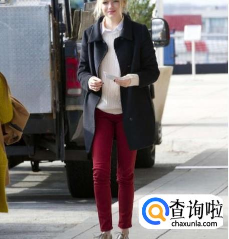 酒红色裤子配黑色大衣。黑色大衣看起来很有气场,配一条酒红色的裤子,看起来特别时尚。