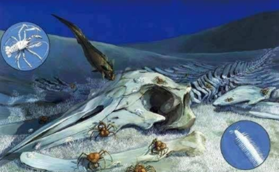 鲸落的第三阶段是非常重要的,一些自养型细菌可以借此释放能量,这也是深海生物的能量来源之一,所以说一鲸落万物生,一个鲸落可能供养各种生物几十年近百年之久。鲸落的形成和消失对许多生物来说是漫长的,从完整的身体到一副巨大的骨架,最后什么也不剩……震撼于鲸鱼的最终归宿,也许是鲸献给大海最后的温柔。