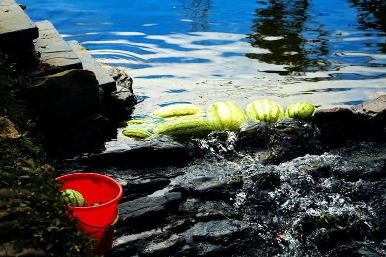 小时候在乡下吃的西瓜,要在深井里泡过半天,沁凉渗骨才好吃。溽暑时节,燥渴难耐,而西瓜多汁饱满,能咬上几块,着实爽利。