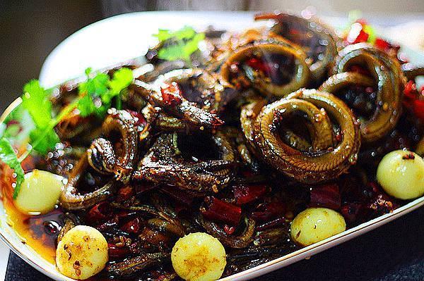 注:鳝鱼的颜色分为青、黄两种,青色有毒,不可食用;黄鳝只能吃新鲜的,因为死后体内很快会产生有毒物质。