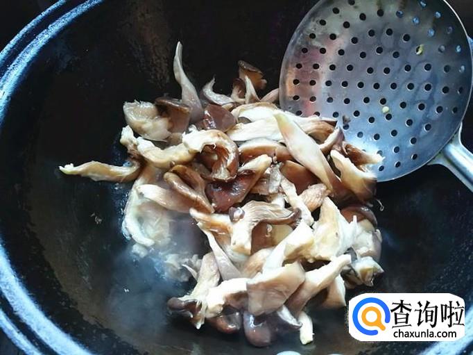 上炒菜锅,加入适量的植物油烧热,倒入洗净的蘑菇爆炒片刻。