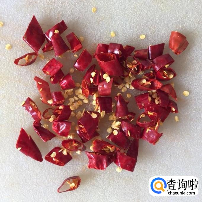 取一把干红辣椒,稍微清洗一下再切成小碎块;