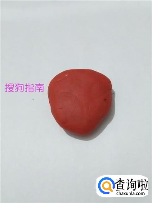 先用红色的橡皮泥捏一个三角形,但是三角形的三个角要用手捏圆滑一点,表示草莓。