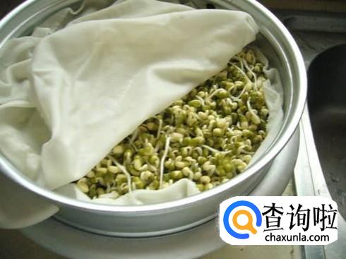 最后把把洗净的豆子放到洗干净的纱布上面,然后放到不锈钢大盆里,在绿豆上面还需要覆盖一层纱布,纱布上面还需要覆盖一些重物压住绿豆,经过几天绿豆就会慢慢的发芽了。
