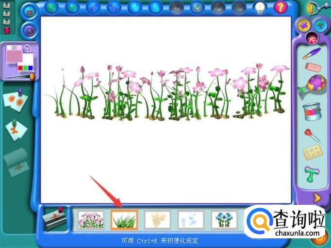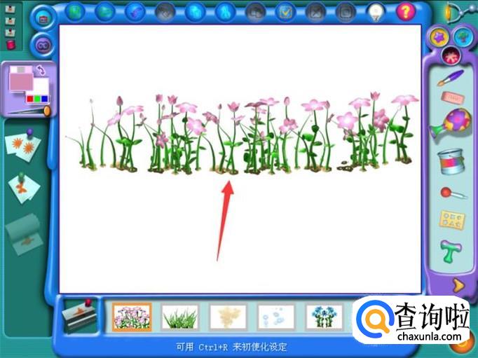 在仙女袋里找到动态仙女袋,我们点一下第一个动态粉色花儿,在金山画王界面空白画面处,根据自己想要画的样子进行点画,如图所示,一棵棵漂亮的动态粉色花就这样展现在我们的眼前。