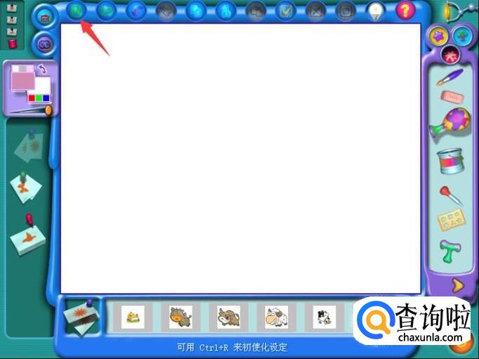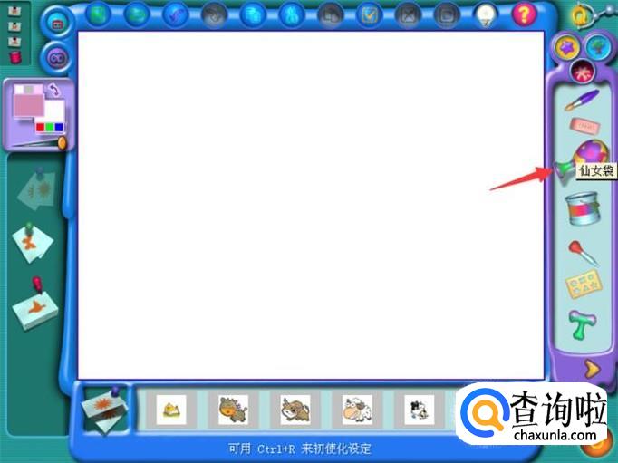 在打开的金山画王界面点N按钮,新建空白画布,再点右侧的仙女袋。