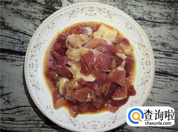 五花肉切成薄片,清洗干净,加入适量的花生油、酱油,提前腌制10分钟。
