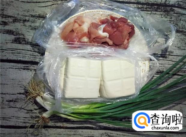 准备好所有原材料:五花肉、嫩豆腐、香葱。