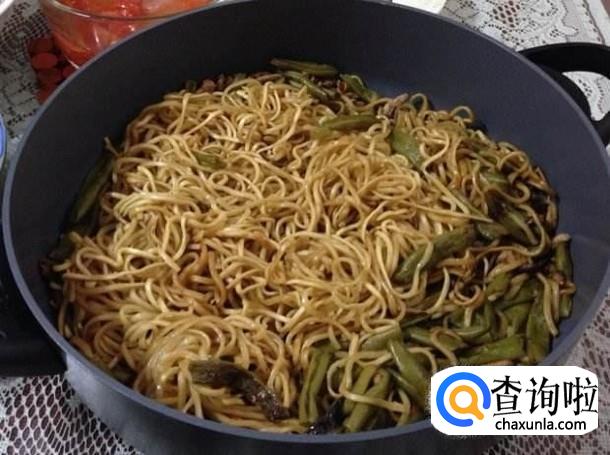 豆角焖面,我们先把豆角清洗干净后切成豆角丝,先把豆角炒软后加入面条翻炒,加水用小火闷几分钟就可以。(这个面条我们需要提前用蒸锅蒸熟)