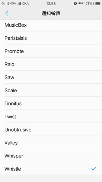 4、选择自己喜欢的通知铃声就可以啦,充电的时候就会提醒了。当然如果是想要关闭,操作方法也很简单。待机桌面点击设置—声音—将手机调至静音或震动模式即可。