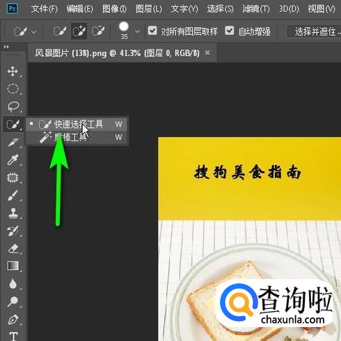 从左侧工具栏中调出快速选择工具,如图所示。