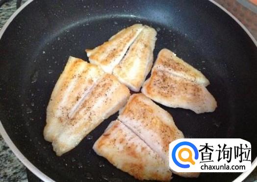 起锅烧油,将龙利鱼放在锅里面煎至两面金黄,如图所示。
