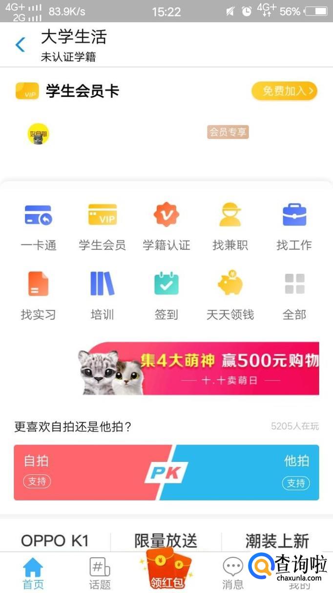 然后,我们在首页找到并且点击更多,再点击大学生活