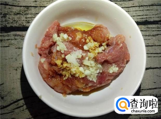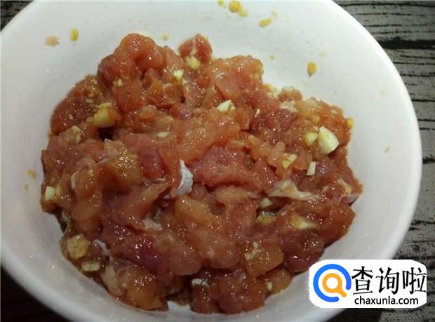瘦肉先切小块,然后再剁碎,剁碎比较好入味哦。