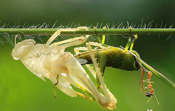 骨化,缺乏弹性,当幼虫长到一定阶段,虫体的生长受到限制,它就要脱掉旧皮,换上新皮才能继续生长。昆虫脱皮是其生命中不可少的环节。昆虫幼虫每脱皮一次,不仅使它们的躯体增大,内部各器官得到进一步的发展,同时,外部形态也发生了变化。另外,由于昆虫的皮是由新陈代谢的产物形成的,所以脱皮也有排泄的作用。昆虫幼虫的生长和形态变化,由于脱皮而显出一定的规律性,例如为害蔬菜的粉蝶就脱皮4次。