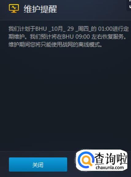 如果战网在维护,也是不能登录进去的,只有等待其维护结束才能进入: