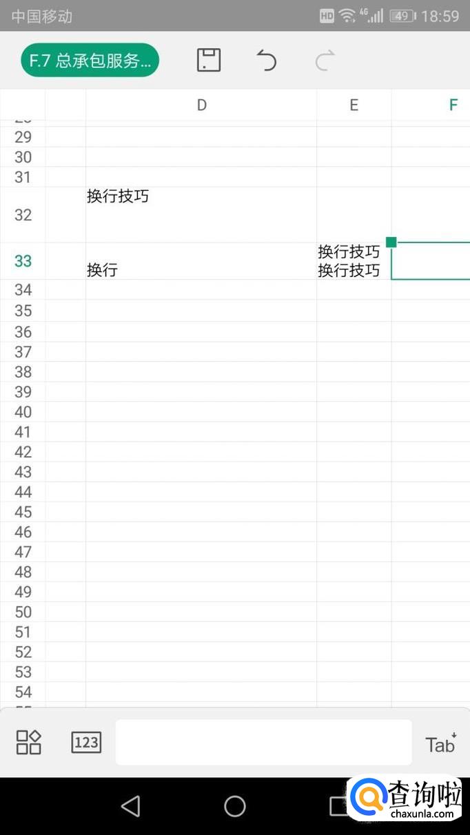 手动换行,点击要输入内容的表格框输入文字,换行就点击旁边的“tab”长按,出现了向下的箭头后就进入换行,输入文字后确定就可以看到效果。