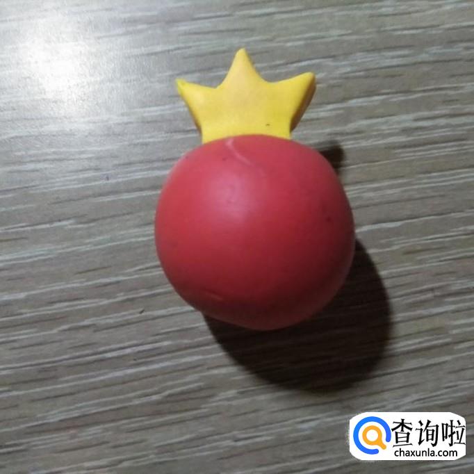 将黄冠与球连接起来,如下图,因为刚刚开封的软陶比较的粘,所以我们直接把两部分拼在一起即可