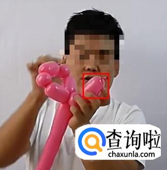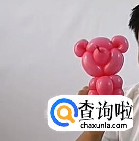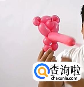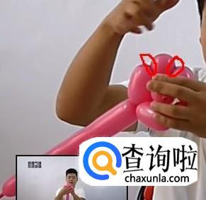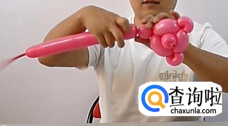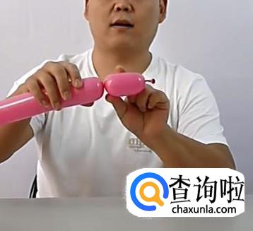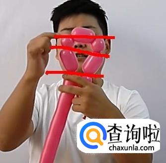 然后把气球短的那端的大泡泡穿过左边泡泡的中心圈,然后把(下面第二张图所示)两个的泡泡间的交点扭在一起,让中间的那个小泡泡变成熊耳结(下面第三张图所示),同理可做成右边的那个熊耳结。