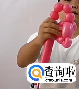 下面就是做熊的身体,把气球长的那端扭一个小泡泡,一共扭四个一样大小的小泡泡。把(如下面地三张图所示)的两个点扭在一起,变成下面第四张图的样子。