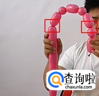 然后把让长气球像下面第一图那样大泡泡和大泡泡对称,小泡泡相互对称。然后把(如下面第二张图所示)两个红圈圈起来的泡泡的交点扭在一起(效果图如下面第三张图)