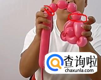先拿出长条气球和打气枪,给气球打气,但是不要打满,留一部分方便后面操作。先做一个5cm左右的大泡泡(如下第一张图)和一个2cm左右的小泡泡,让大的和小的泡泡间隔分布,一共做四个大泡泡,三个小泡泡。具体看下面第二张图。