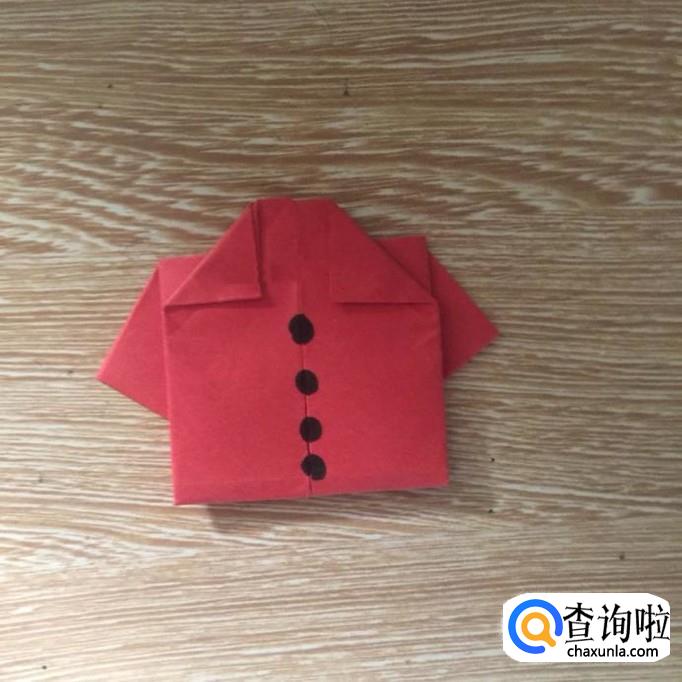 最后把底部往后折叠并画上衣服的扣子,如下图所示。这样一个衣服就折好了,希望大家能够喜欢。