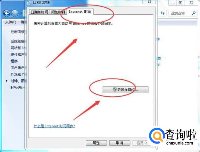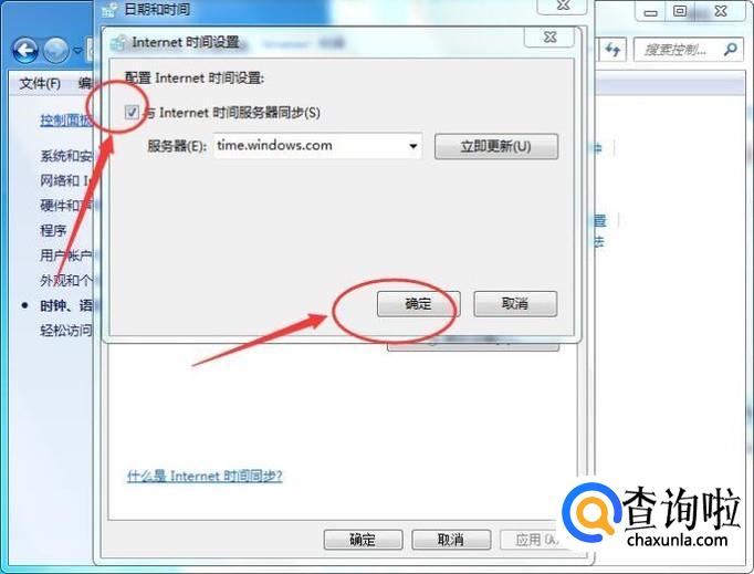 然后勾选【与Internet时间服务器同步】,点击【确定】按钮即可,如下图所示: