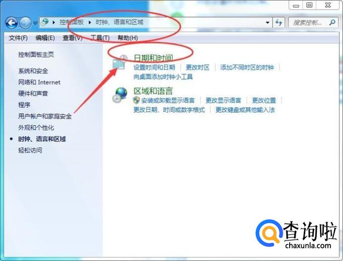 然后点击右侧的【时间和日期】链接,如下图所示: