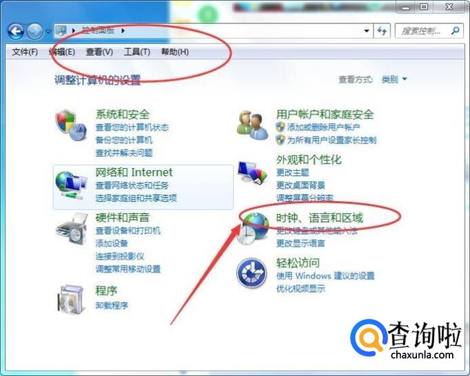 打开【控制面板】,点击【时间、语言和区域】链接,如下图所示: