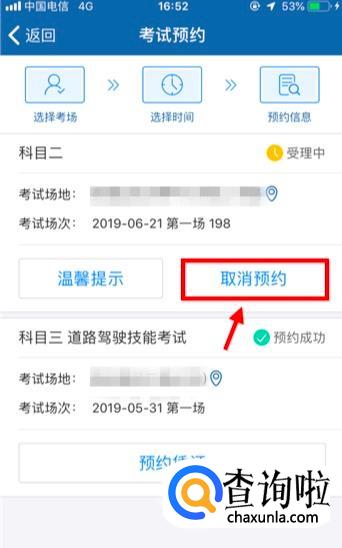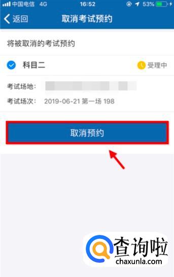 然后你可以看到有一个蓝色图标的取消预约选项,点击后按照它的提示操作即可。