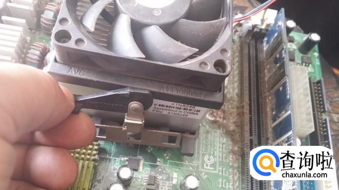 把CPU和散热器底部的残余硅脂擦净,把风扇上的灰尘清理干净。